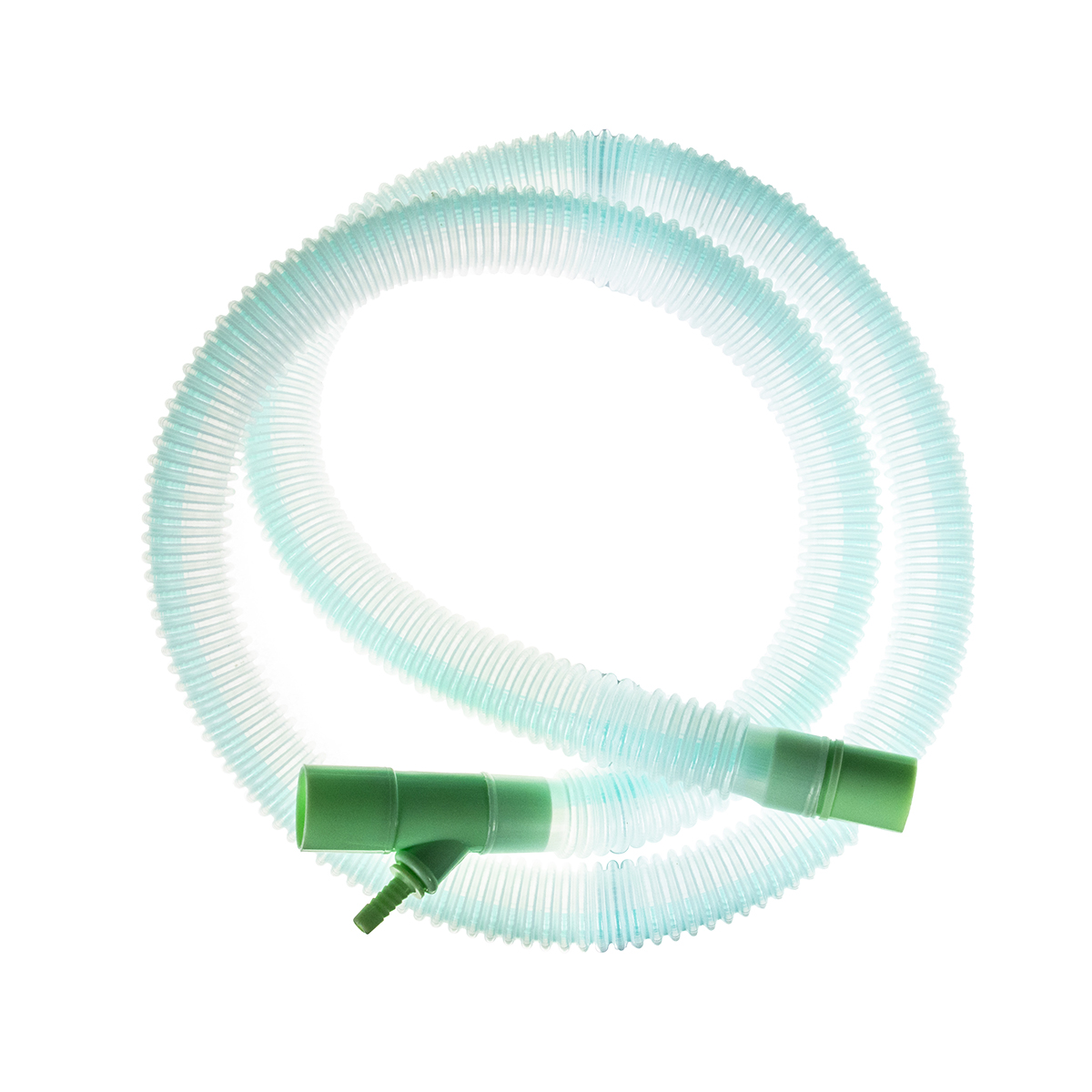 The inner tube may be green or blue depending on what is available from the supplier A hose barb to which fresh gas supply needs to be connected. The exhaled gas flows through the clear corrugated outer tube to the opposite end, the expiratory port of the circuit.